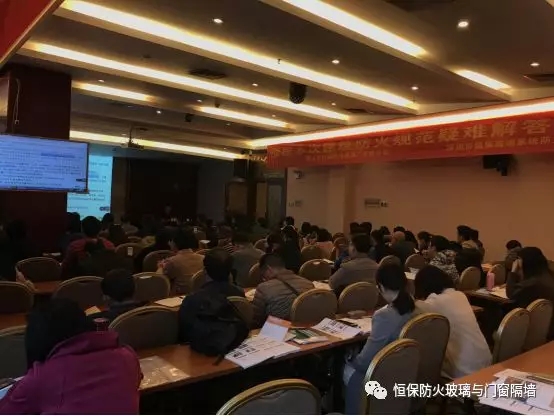 本次國家性防火規(guī)范高級培訓邀請了多方有實力,國內(nèi)外知名的行業(yè)專家、業(yè)界人士以及專家個人參與!而鶴山市恒保防火玻璃廠有限公司作為防火玻璃國標參編企業(yè)、防火玻璃專家、防火門窗專家,亦受邀出席了本次活動,并且在現(xiàn)場分享了恒保公司21年來專業(yè)研究與生產(chǎn)防火玻璃、防火玻璃門窗系統(tǒng)等的經(jīng)驗,為與會人員提供了珍貴的價值。