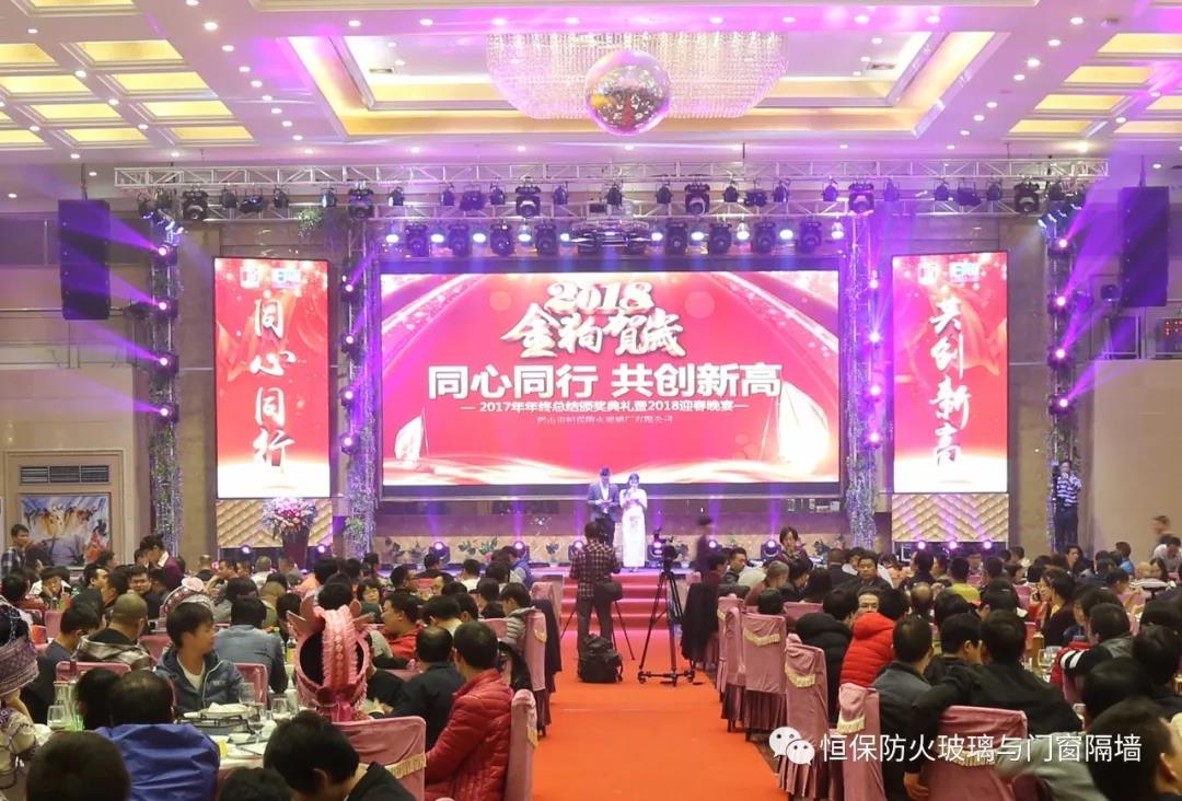 【同心同行,共創新高!】鶴山市恒保防火玻璃廠有限公司2017年年終總結頒獎典禮暨 2018年迎春晚會,在陳總攜同著高管團隊領唱《相親相愛一家人》的歌聲中,畫上了完美的句號。