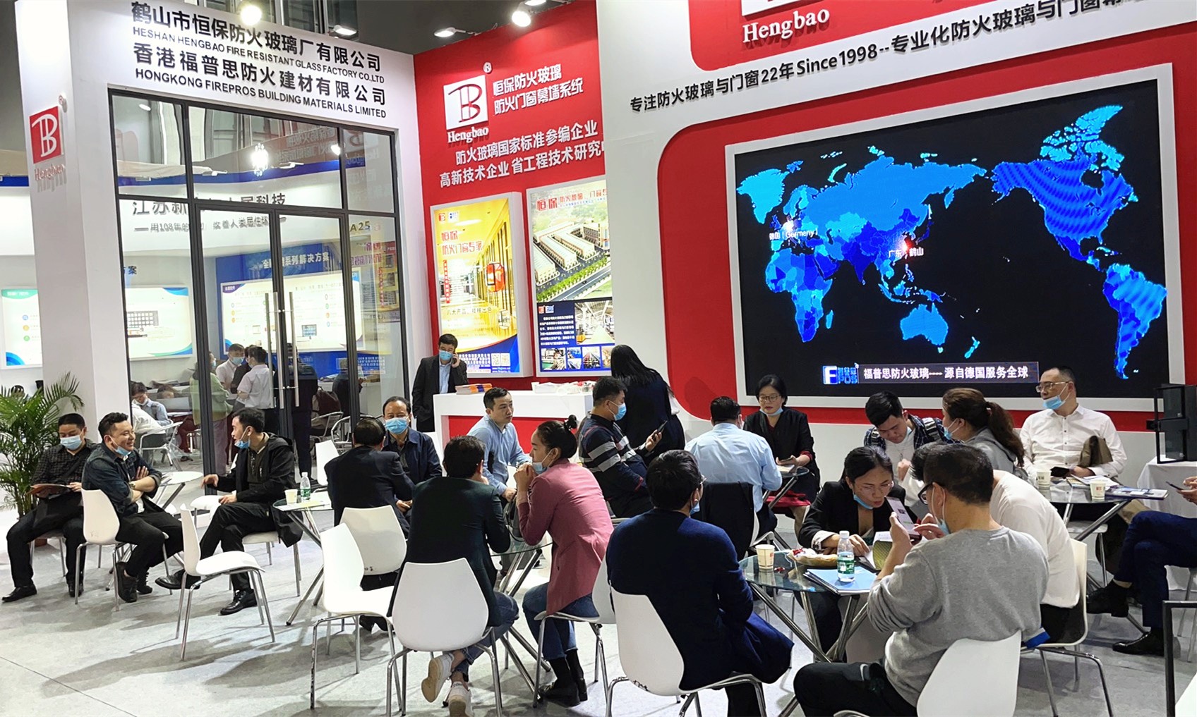 在團隊的努力下,恒保公司展位人氣一直不減,會客區虛無坐席。眾多客戶經過現場咨詢了解之后,更深層次了解并認可了恒保防火玻璃,并表達了熱烈的合作意向。